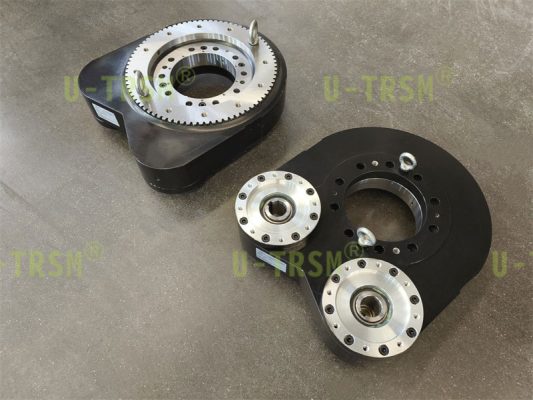 U-TRSM design engineers have developed this slewing drive based on customer requirements: the housing and adapter flange are made of aluminium alloy, and the slewing bearing is made thinner, reducing the weight from the standard model’s 50 kg to less than 37 kg, while ensuring that the load and output torque performance remain unchanged.